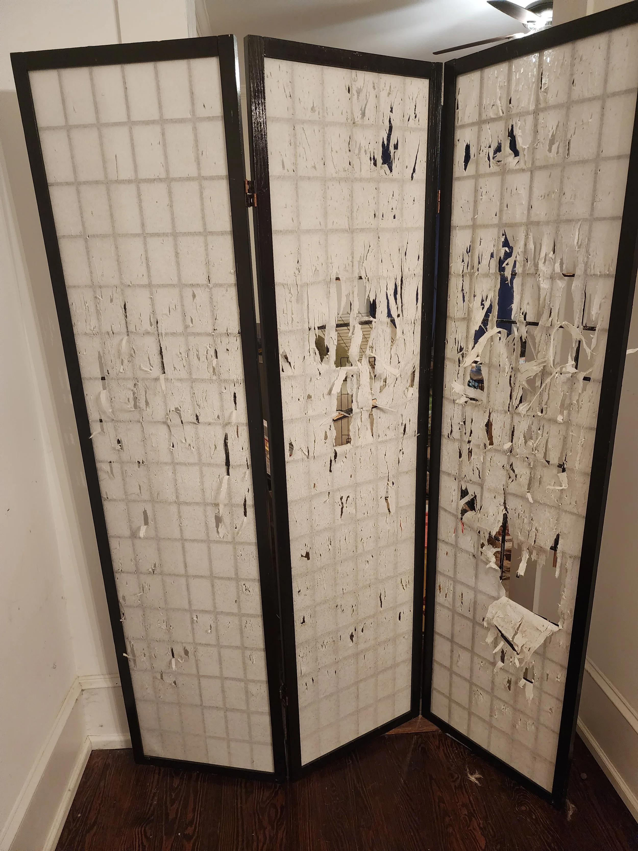 I have a room divider between my living room and my kitchen/dining room. I use it to keep my cats off of my living room furniture. In the living room is the first “adult" and not a hand-me-down couch my husband and I have ever owned, and we would like to keep it nice.