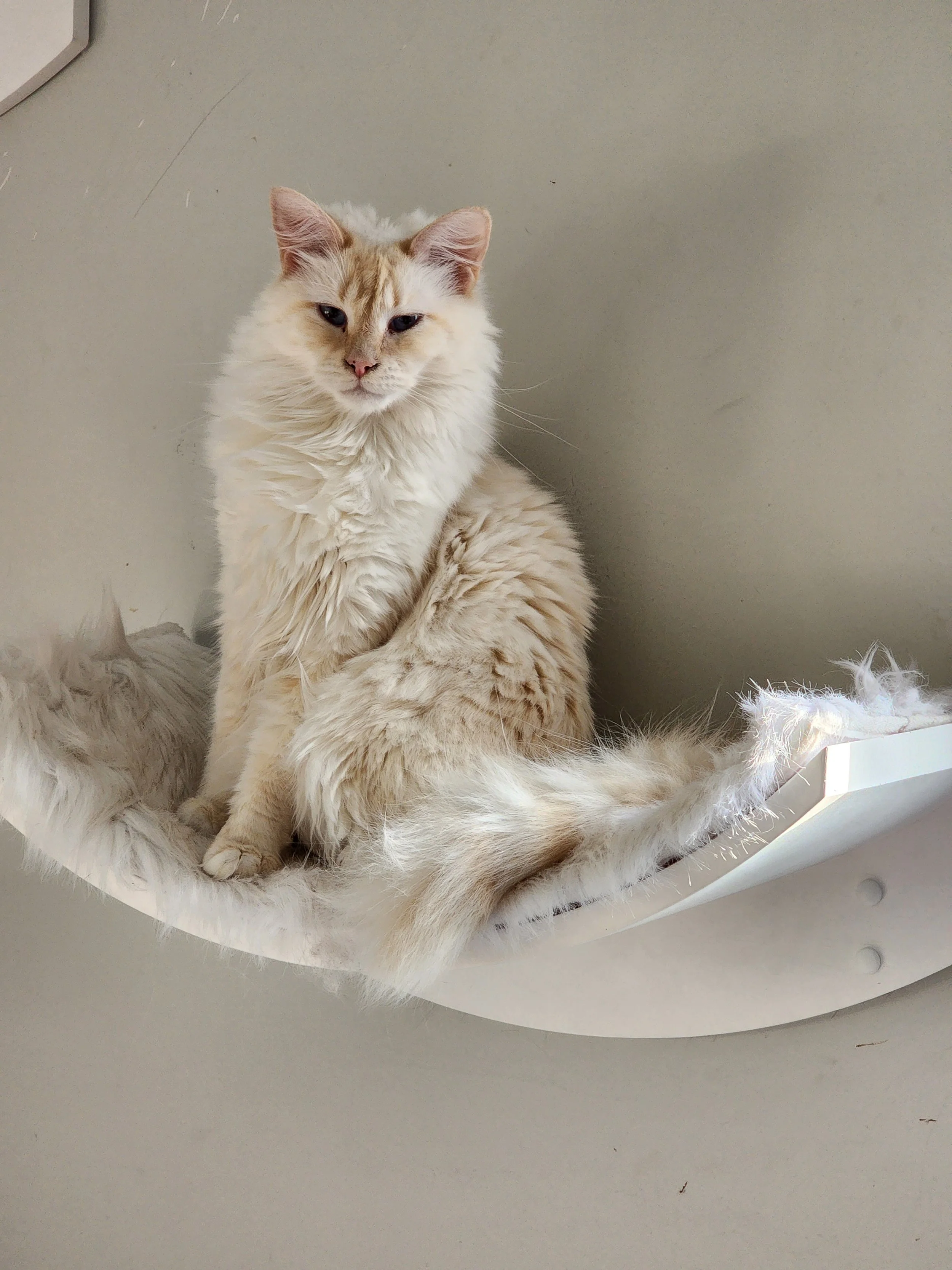Sophia climbs the divider and goes to the other side so she can hang out in the living room.
